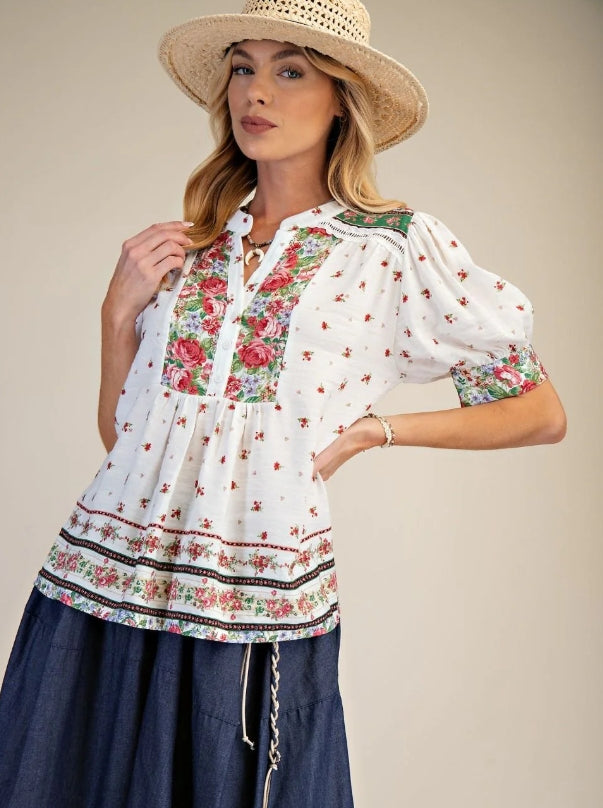 Sage Pink Floral Printed Puff Sleeve Top