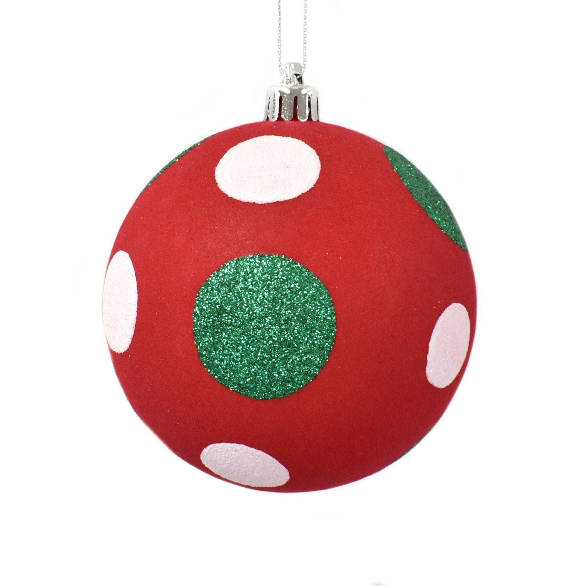 This 4" Candy Glitter Dot Ball is made up of a blend of red and green glitter, providing a festive and eye-catching addition to any celebration. Perfect for holiday parties, the glitter dot ball is sure to be a standout.