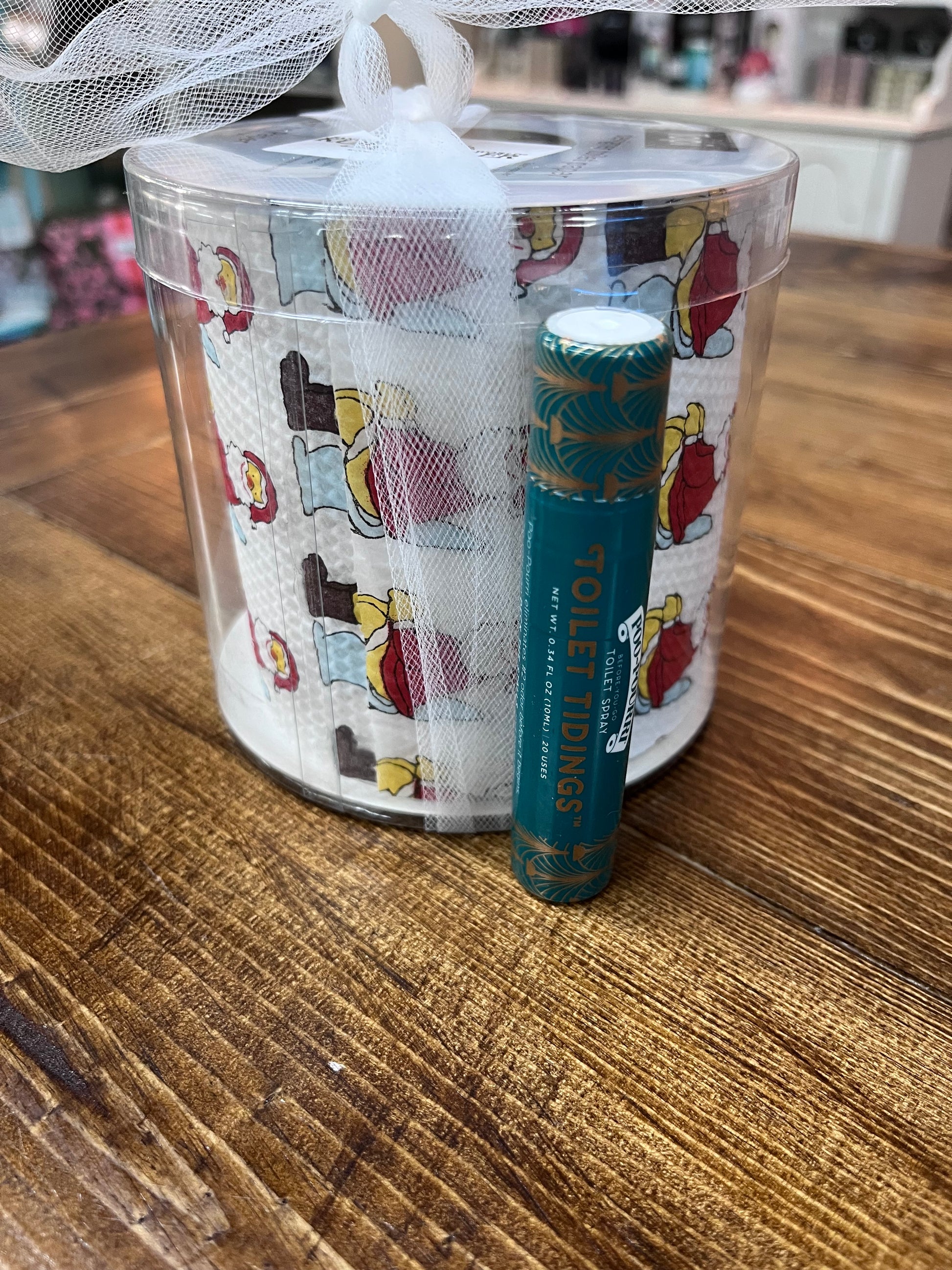We have 6 different designs of fun Christmas toilet paper paired with a 10ml Poo-Pourri Christmas spray. The perfect gift for that tacky party, gag gift or a fun exchange.