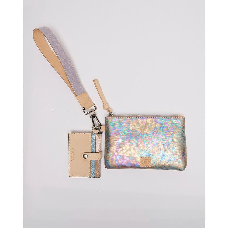 The Combi, a combination of on-the-go accessories, is a new way to carry your keys, cards, and the small stuff together or separately. This colorful wristlet wallet includes a pocket pouch, secure card slot wallet and fits comfortably around your wrist - ready for your next journey.