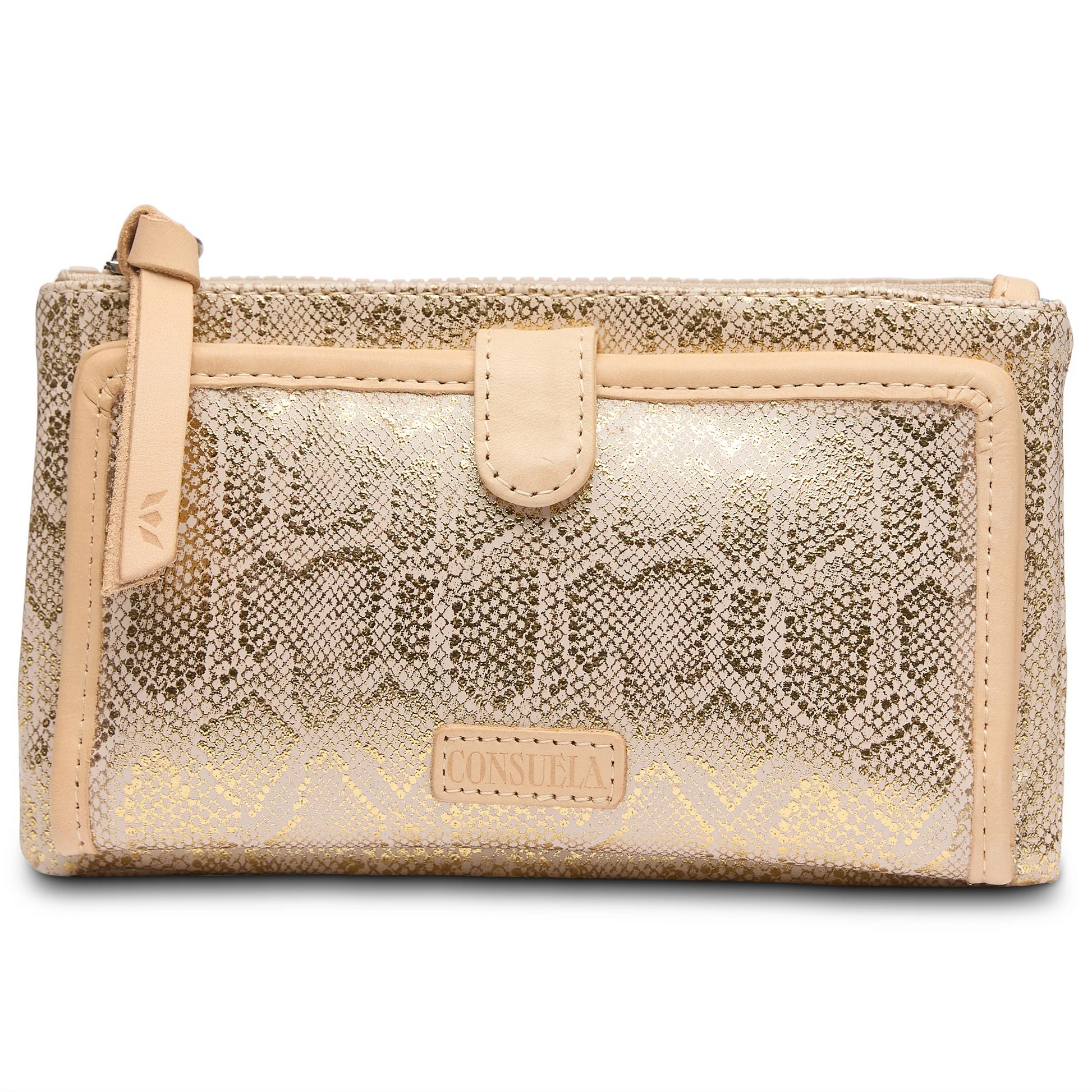 Our Slim Wallet carries cards and cash without weighing you down. Open the snap closure to reveal an ID window pocket, 12 card slots, and 4 slide pocket compartments in this versatile and colorful wallet.