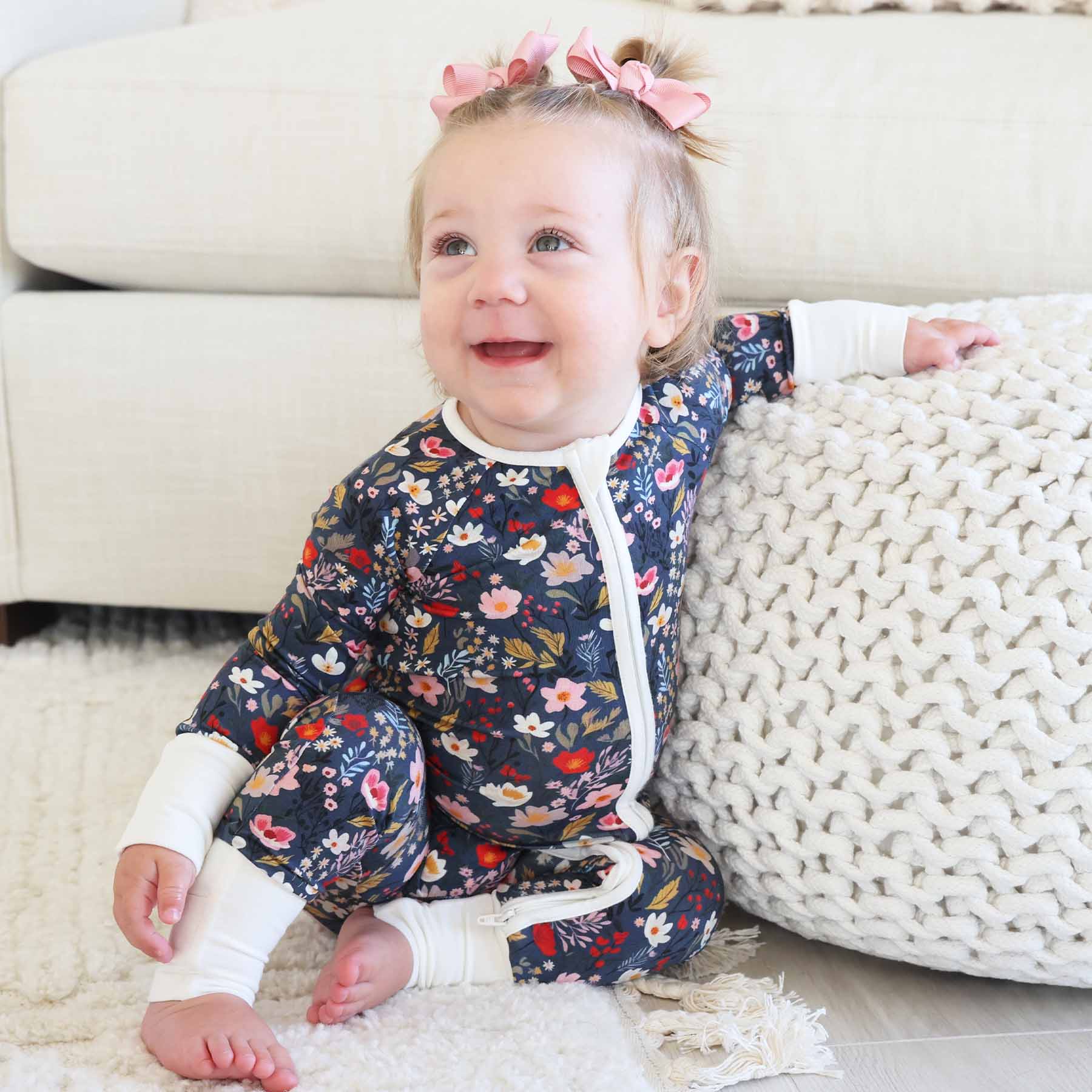Treat your baby to the softest, most adorable pajama romper imaginable, and watch them drift off to sleep in the sweetest midnight meadow! This pajama romper is not only cute, but is as comfy as can be. Made of dreamy bamboo viscose fabric, this romper helps regulate your baby's temperature throughout the night, making it the perfect pajama for all seasons. With a convertible flip mitt design and full length zipper, dressing your baby is easy-peasy and more convenient than you ever thought possible!