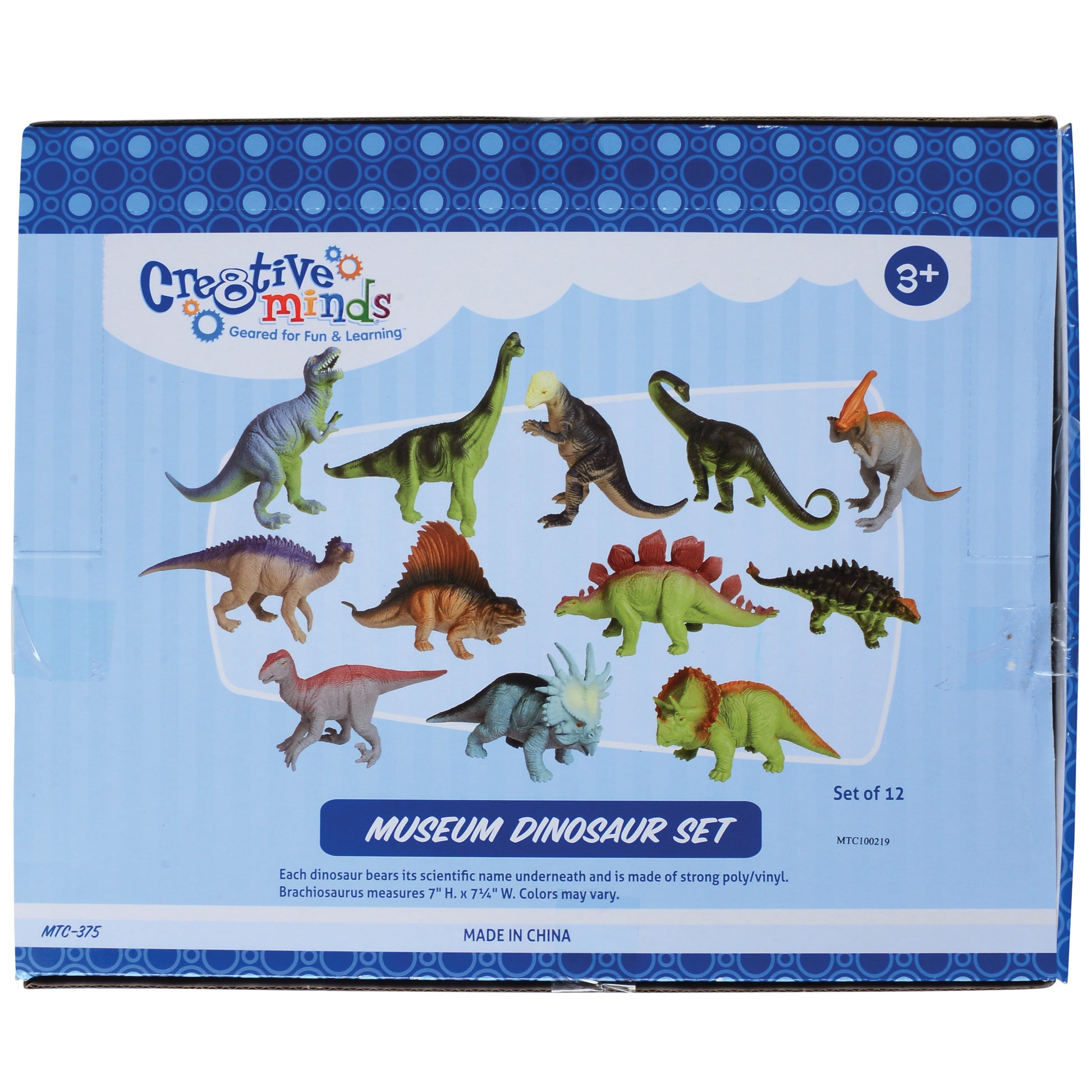 Each of these 12 realistically sculptured and colored dinosaurs bears its scientific name and is made of strong poly/vinyl. Brachiosaurus measures 7" H. x 7 ¼" W.