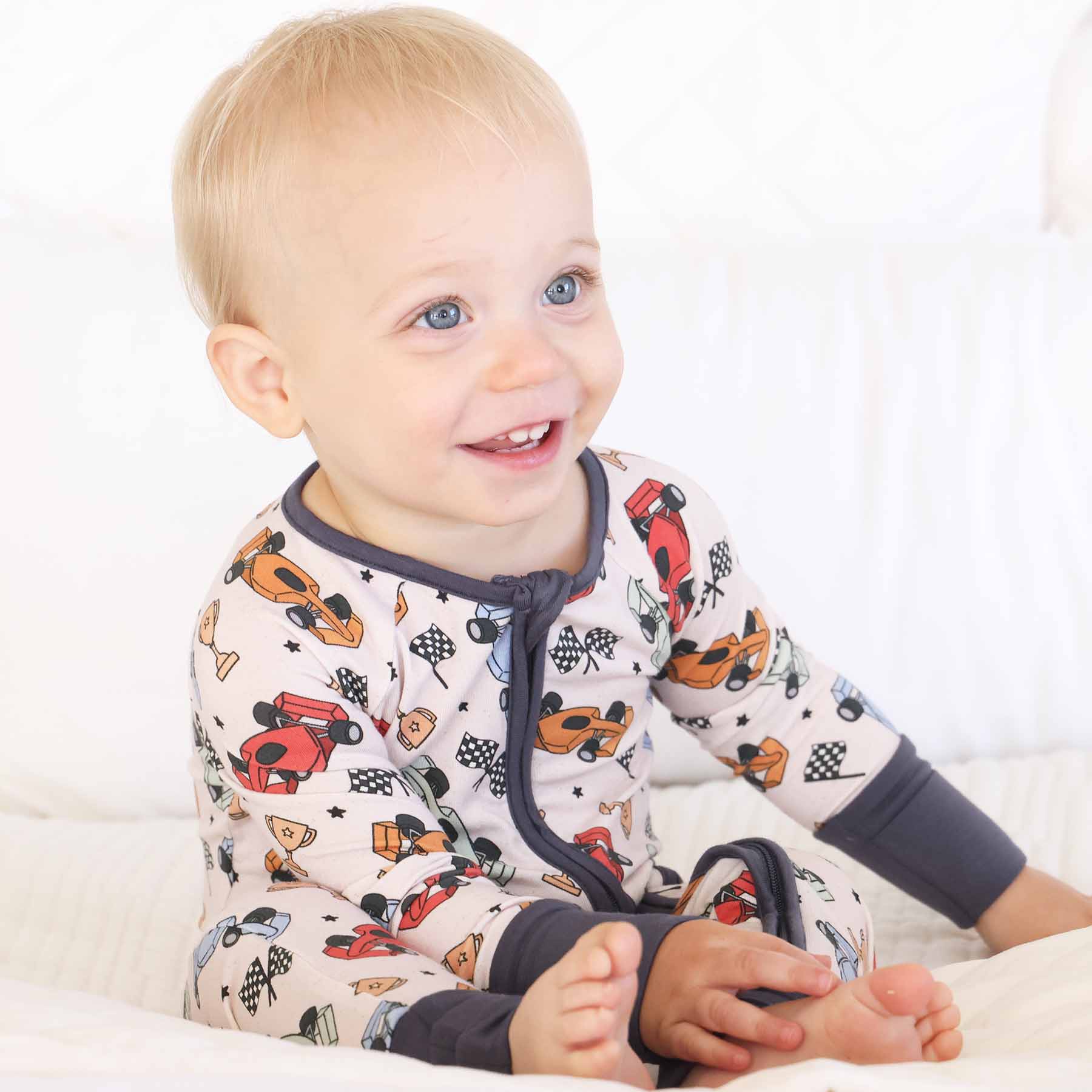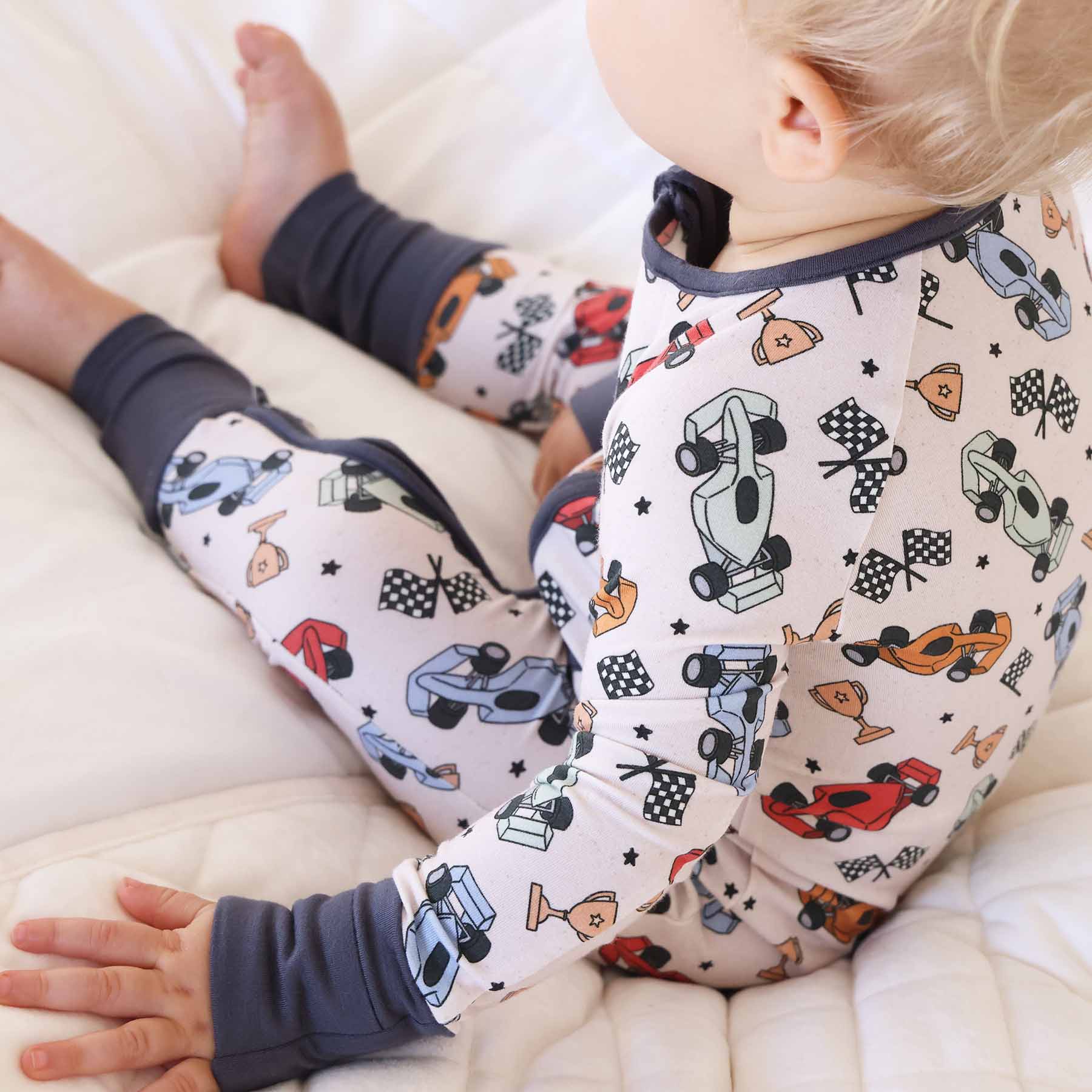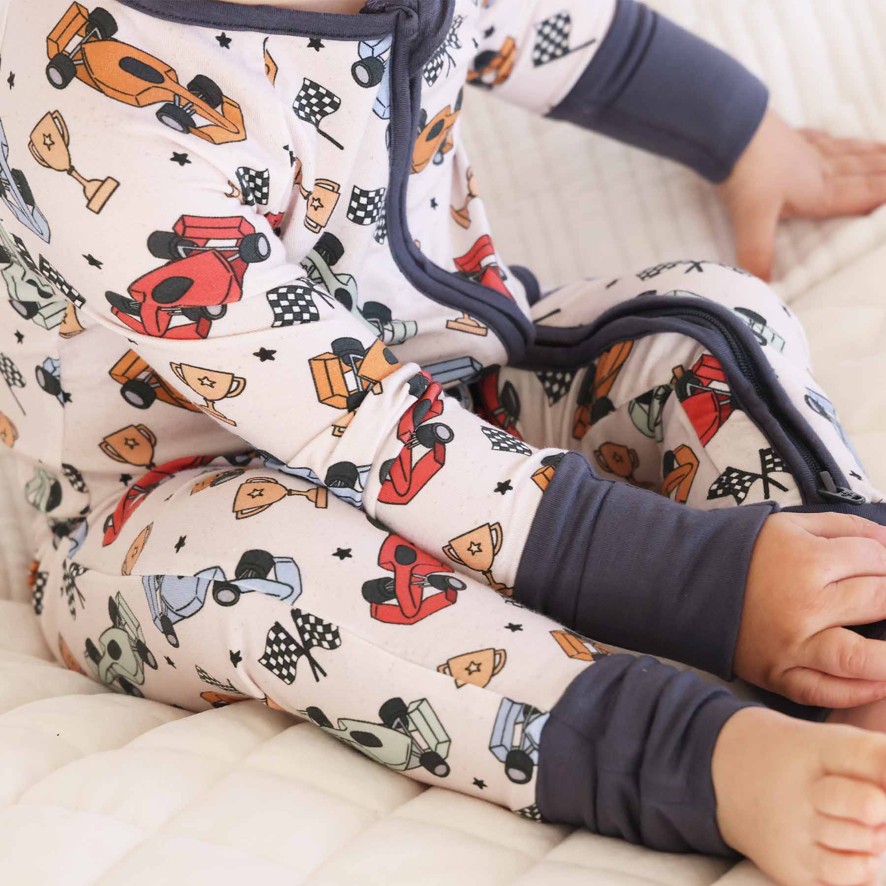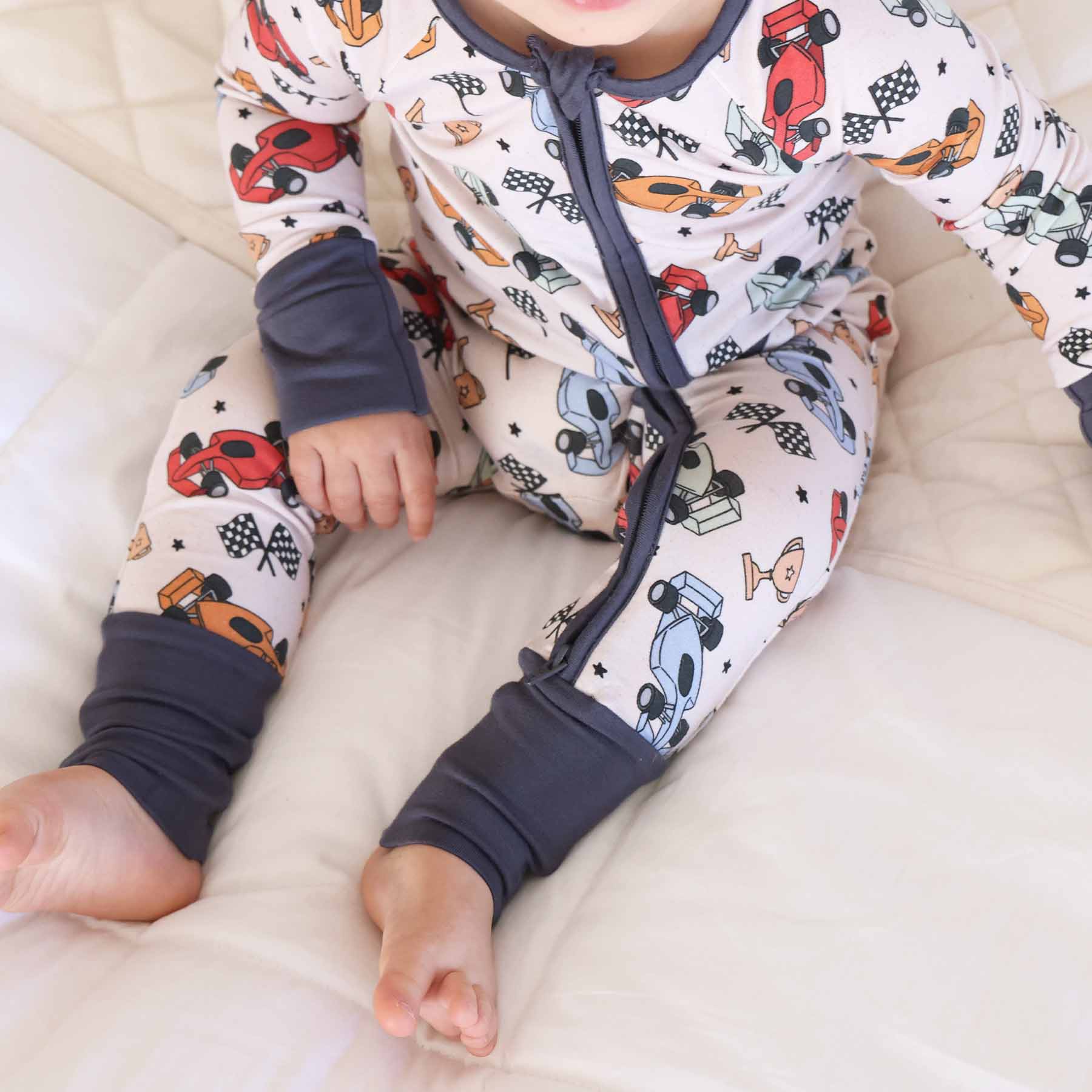 The softest pajamas for your little racer! This Pit Crew convertible zip romper is made from dreamy bamboo viscose fabric, keeping your little one snuggly and cool through every season. Featuring a full-length zipper and convertible flip mitts, this romper makes diaper changes a breeze, so your little one can get back to dreaming about their next day on the track!