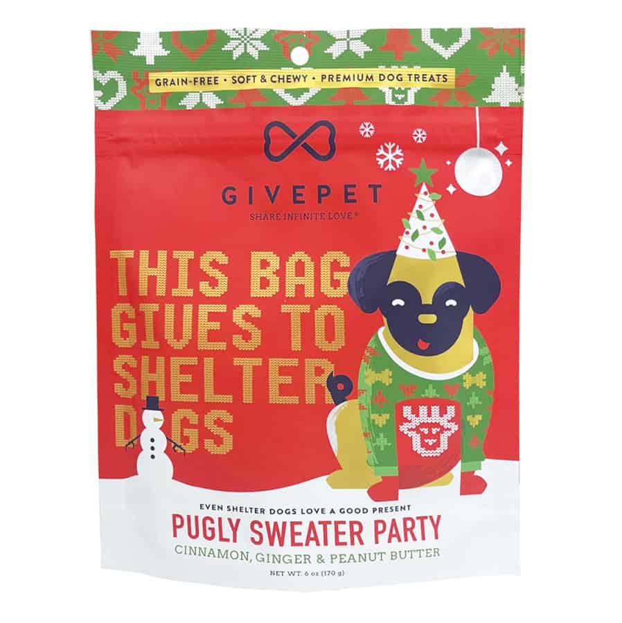 A version of your favorite seasonal sweet made just for pups, the GivePet Pugly Sweater Party dog treats—flavored with cinnamon, ginger and peanut butter are sure to be a holiday hit.