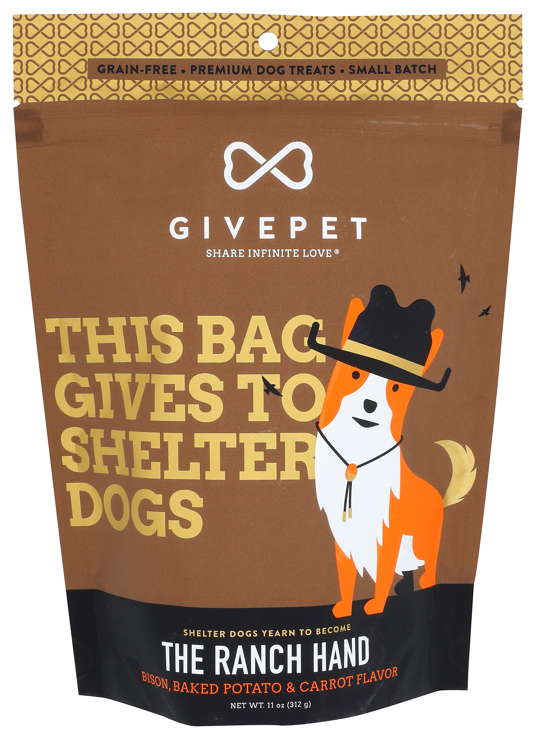 An 11oz bag of baked dog biscuits featuring bison as the first ingredient. A crunchy biscuit that dogs love!