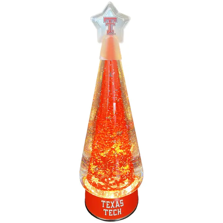 This 12-inch plastic collegiate spinning water globe tree is a dazzling tribute to school pride and holiday spirit. Featuring an elegant conical design filled with shimmering glitter that moves and sparkles with the rotating interior, it creates a captivating display of light and motion. Topped with a star adorned with the school logo and standing on a base branded with the school name and colors, this unique décor piece is perfect for fans and alumni. Ideal for adding a festive touch to your home or office, it’s a standout decoration that celebrates team spirit in style. Runs on three AA batteries, not included.