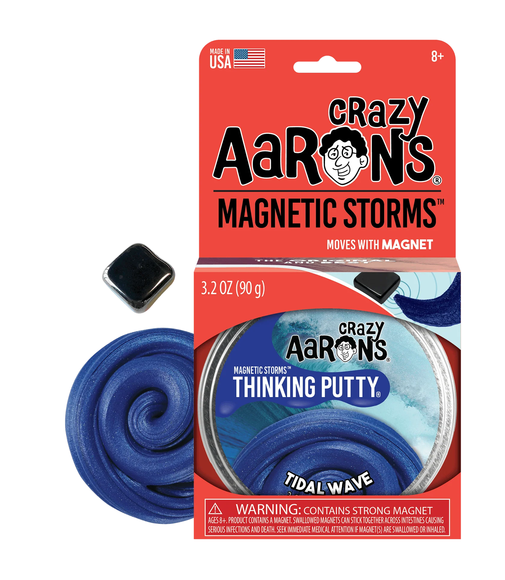 Created to mimic the effect of a giant swell, Tidal Wave Thinking Putty® comes with a powerful magnet to help you create incredible effects. Charge the putty with the magnet and watch as the iridescent blue crest moves toward it in an invisible magnetic field. You’ll even see ripples on the surface just like the sea.